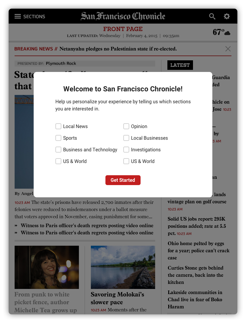 We know our general audience, but we really don’t know anything else about our users when they sign up. So we set up the simplest onboarding experience for our first phase to get to know them better. Asking for their preference in which sections they like reading will automatically reorganize their experience.